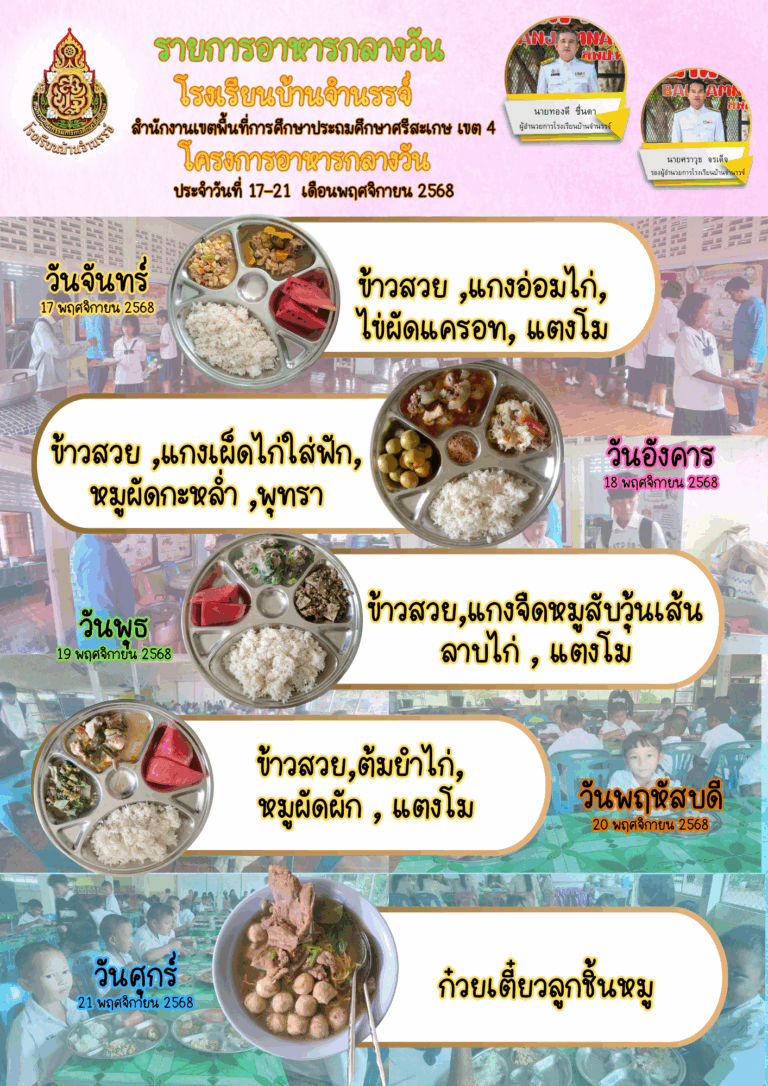 รายการอาหารกลางวัน โรงเรียนบ้านจำนรรจ์