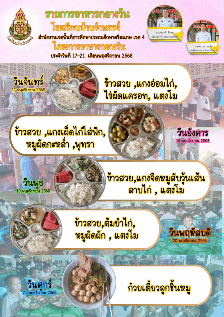 อาหารกลางวันประจำวันที่ 17-21 พฤศจิกายน 2568 Leave a Comment / ข่าวประชาสัมพันธ์, รายการอาหารกลางวันประจำสัปดาห์ / Asama อาหารกลางวันประจำวันที่ 17-21 พฤศจิกายน 2568 Read More »